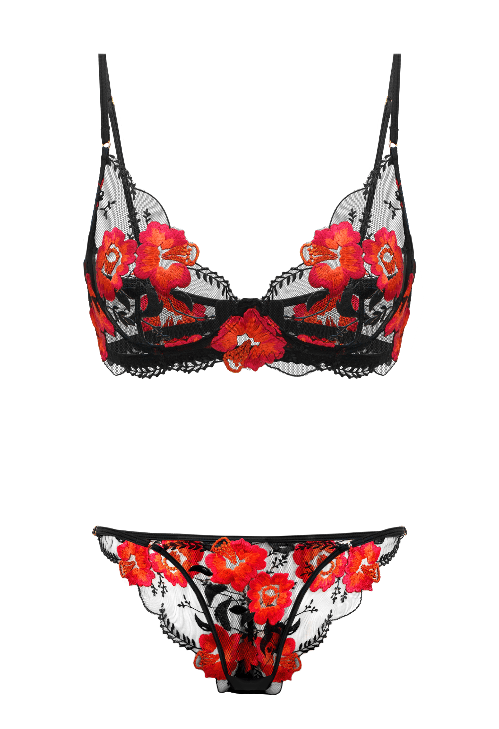"I adore the luxurious feel of the Megan set. The satin feels heavenly against my skin, and the lace is beautifully intricate."