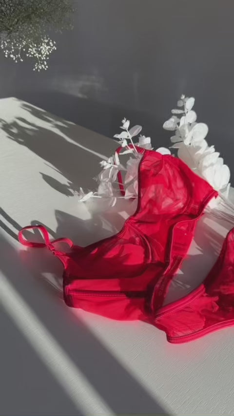 Turn up the heat without giving up comfort. The Mia Thong in red blends sheer mesh with luminous silk trim for a bold yet wearable finish.